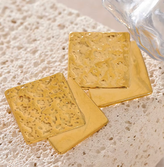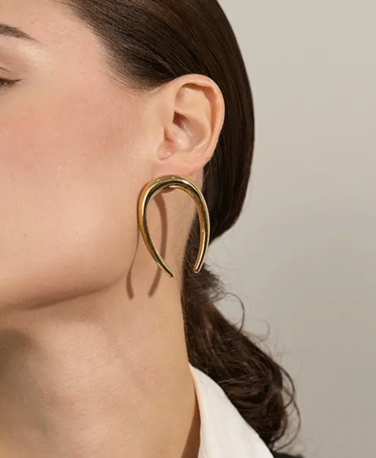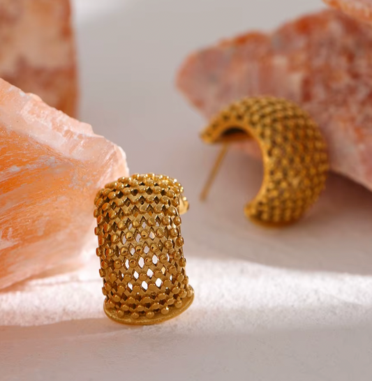 Irregular Geometric Hollow Huggie Earrings 18K Real Gold Plated