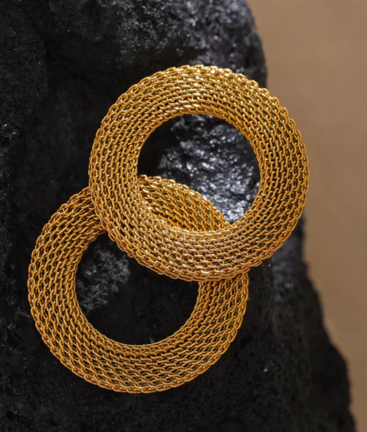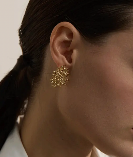 Unique Metal Geometric Statement Unusual 18K Gold Plated