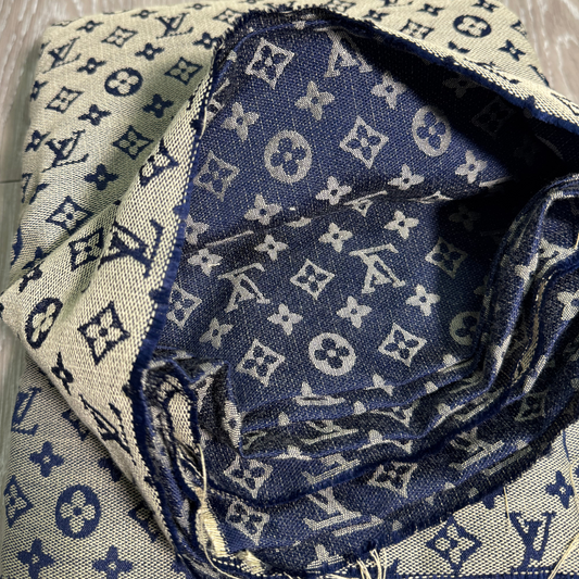 L02 Jacquard Monogram Fabric - Mixed Tone Blue