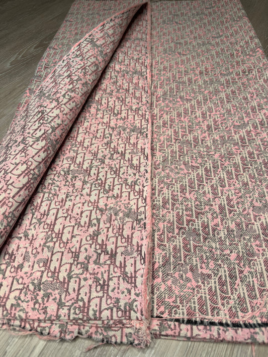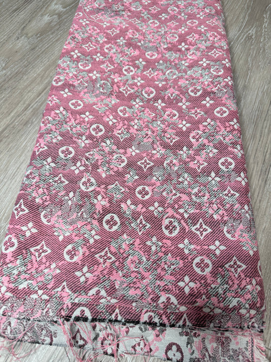 Pink GG Designer Inspired Jacquard Fabric - 44 inches(more than a yard