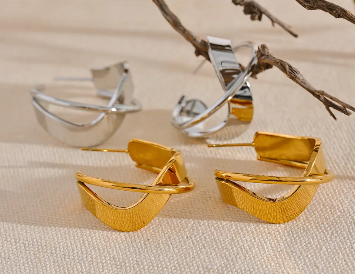 Irregular Geometric Hollow Huggie Earrings 18K Real Gold Plated
