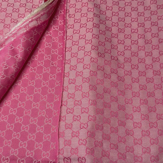 Pink G.G monogram jacquard fabric, medium to thick in texture. Perfect for clothing, upholstery, and ideal for creating coats or jackets. Also versatile for crafting projects like, bags, car seats, also suitable for custom sneakers, such as AF1, Air Jordan, Vans e.t.c
