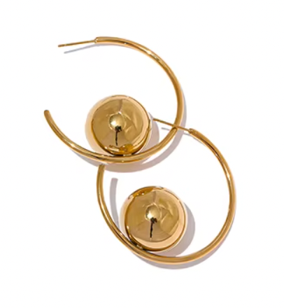 Round Ball Metal Huggie Earrings Gold Silver 18K Real Gold Plated