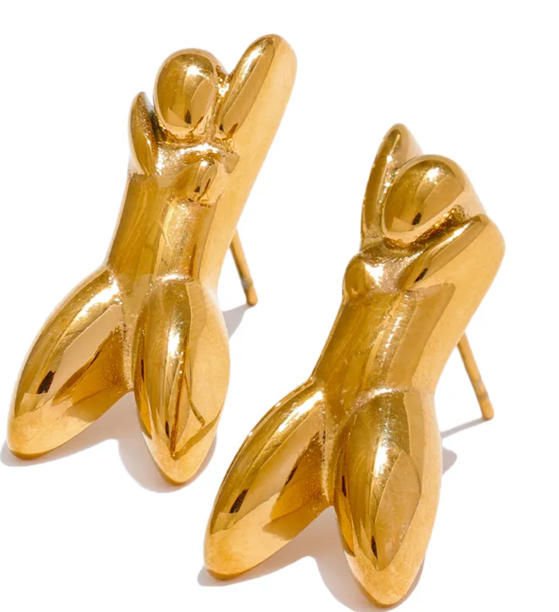 Fashion Abstract Human Stud Earrings Stainless Steel Creative Personal Gold Jewelry Waterproof